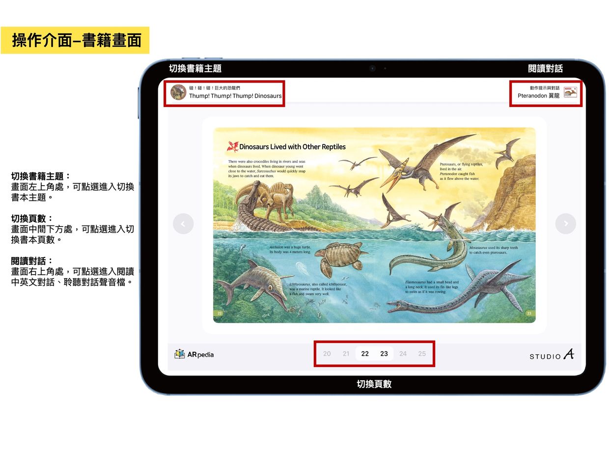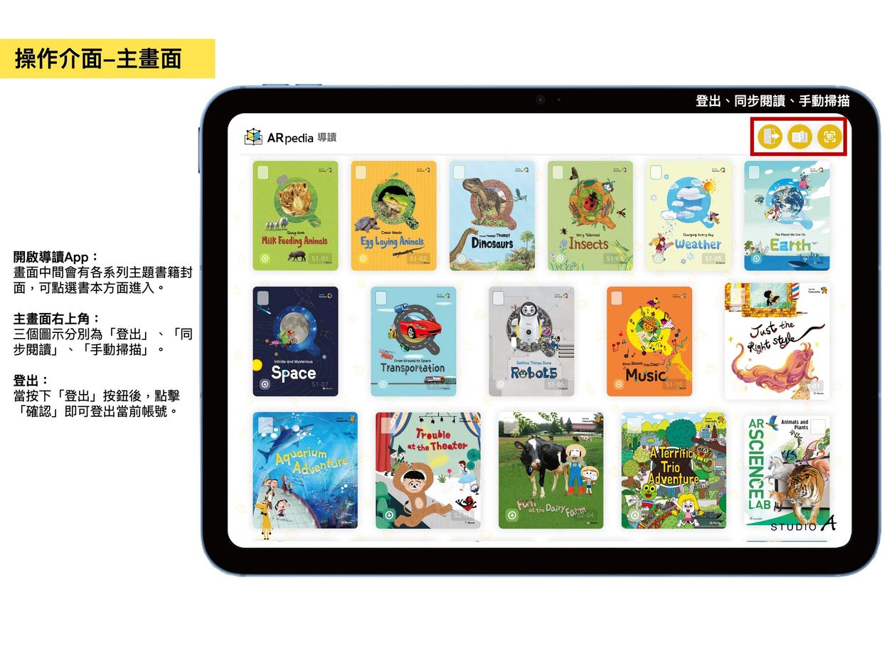 導讀 App 由 STUDIO A 獨家開發,擁有簡單明瞭的操作介面,提供數位學習資源,透過互動式的閱讀體驗、提供即時單字翻譯、聲音等,以電子書的形式呈現數位內容結合ARpedia 全英文繪本配合,激發學生的學習興趣,簡單明瞭的介面,讓師生家長一次就能上手!